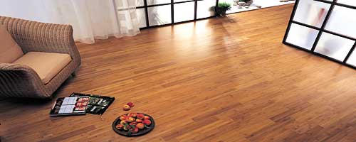 Parkett aus Gras. Eine Besonderheit unter den Massivholz-Parkettprodukten stellt ein aus 3 Schichten Bambus hergestelltes Parkett dar. Zum Einen ist Bambus im botanischen Sinne kein Holz sondern ein Gras, zum Anderen besteht es zwar aus massivem Bambus, aber nicht aus einem Stück - sondern aus 3 Schichten, die mit einem schadstofffreien PVAC-Holzleim verklebt sind. Die Stäbe sind 92mm breit, 920mm lang und 15mm dick. Erhältlich ist Bambus-Stabparkett mit horizontaler oder vertikaler Decklamelle in naturhell oder lichtbraun mit einer Nutzschicht von 5mm. |
