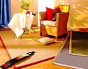 Bordürenteppiche - der elegante Blickfang für einen Parkettboden. Bordürenteppiche sind ein eleganter Blickfang, ein Mittelpunkt für jeden Parkettboden. In gewohnter Naturteppichboden-Qualität einfach zum Wohlfühlen. Lieferbar in Längen bis 15m und bis 4m Breite aus unserer Naturteppich-Kollektion kombinierbar mit 11 Bordürenfarben. |
