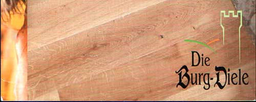 Eine Massivholzdiele mit besonderem Charakter. Die "Burgdiele" ist eine Massivholzdiele mit einem besonderen Charakter, die durch gewollte Gebrauchsspuren "bearbeitet" und somit künstlich gealtert wird. Durch die Verwendung von Pigmentölen und einem aufwendigen Verfahren wird dieser "Alterungsprozeß" noch stärker betont. |