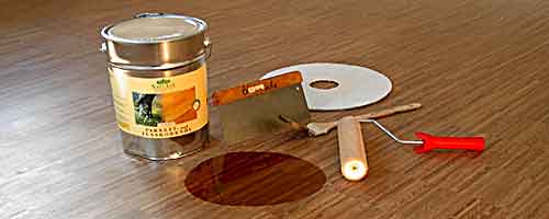 Ölen - eine natürliche Oberflächenbehandlung. Bei der Verwendung von Parkettölen die frei von Schadstoffen, im besonderen von gesundheitsschädlichen Lösemitteln sind, haben Holzfußböden mit geölter Oberfläche die beste Ökobilanz. Die weiche, neutrale und offenporige Oberfläche beeinflußt das Raumklima positiv und gewährleistet ein hohes Maß an Atmungsaktivität. Auch die Reparaturfreundlichkeit geölter Oberflächen ist im Vergleich zu versiegelten Parkettböden ein enormer Vorteil. Außerdem besteht bei geölten Oberflächen keine Gefahr der Seitenverleimung. Ein weiterer Vorteil einer Oberflächenbehandlung mit Öl ist das "Anfeuern" des Holzes. Dabei wird die Maserung und Struktur des Holzes besonders hervorgehoben. Das Ölen ist eine handwerkliche Arbeit. Kleine Störungen in der Oberfläche können daher auftreten. |